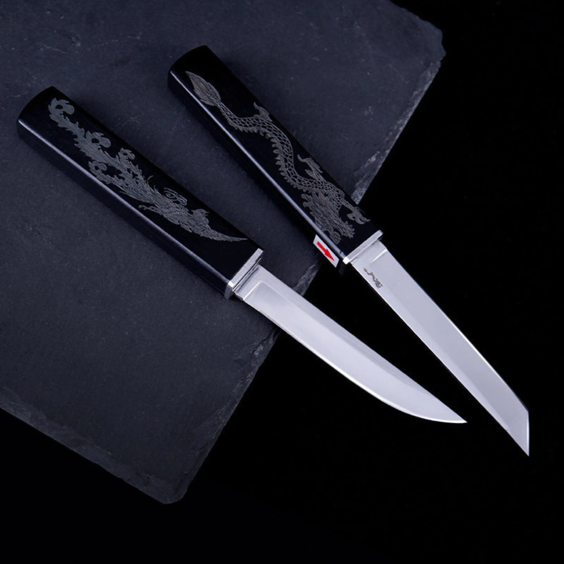 Met een vlijmscherp 4,5 inch lemmet dat de veelzijdigheid van een koksmes en de precisie van een kiritsuke combineert, staat het als een compacte maar krachtige culinaire metgezel voor zowel culinaire avonturen binnenshuis als buitenshuis.