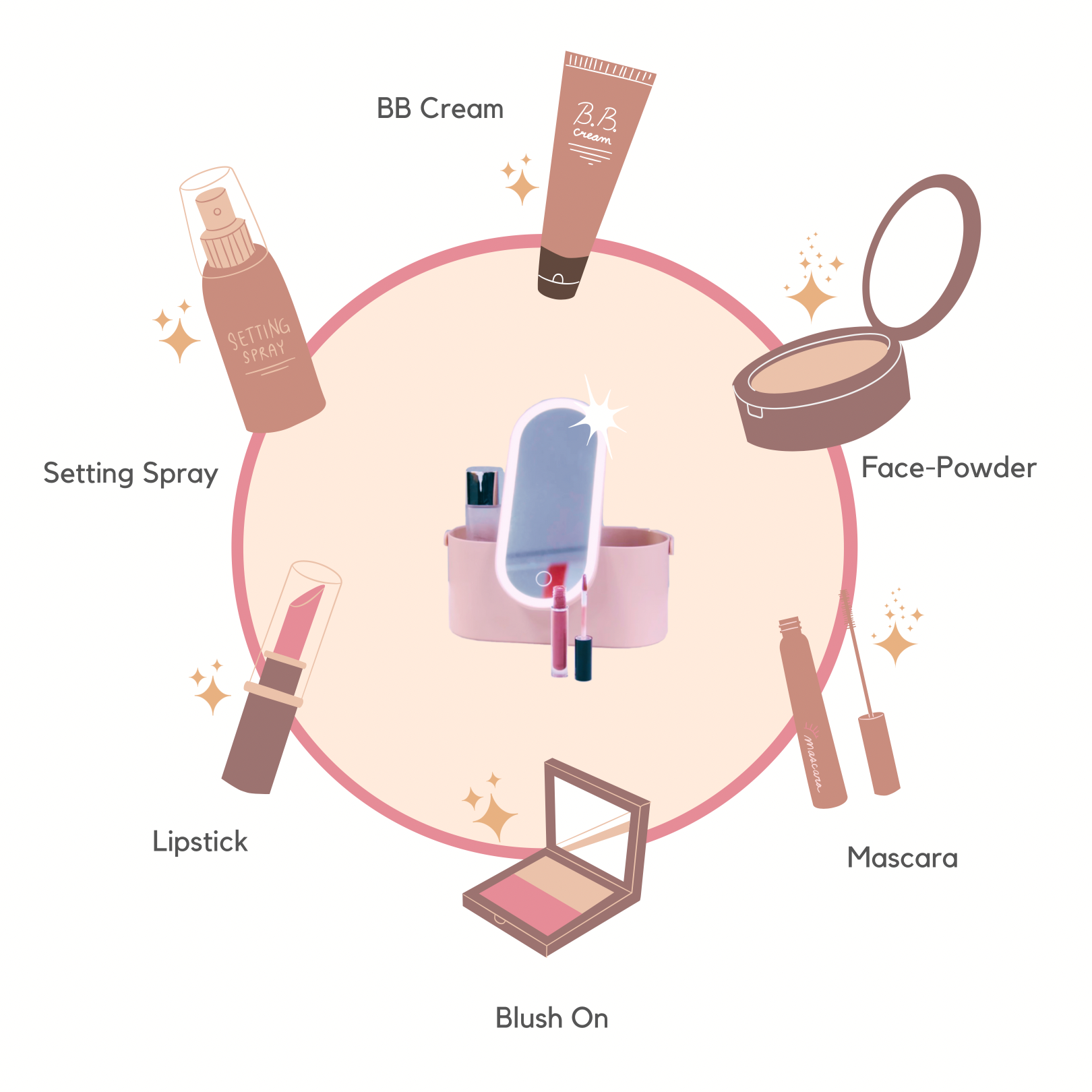 Het schattige, fantastische en functionele ontwerp omvat een 360 graden draaibare spiegel met LED-verlichting, waardoor het je stijlvolle partner is voor elke bestemming.