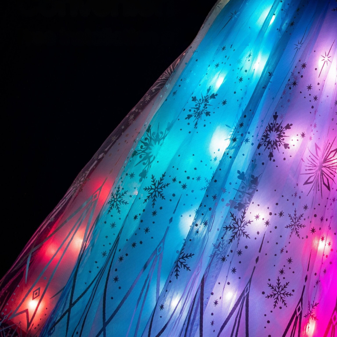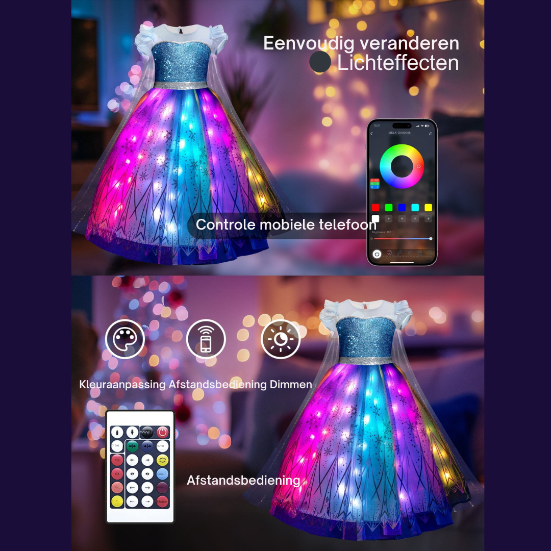 In de enkele modus gloeit deze prinsessenjurk met een zacht, koel wit licht dat elegantie uitstraalt.