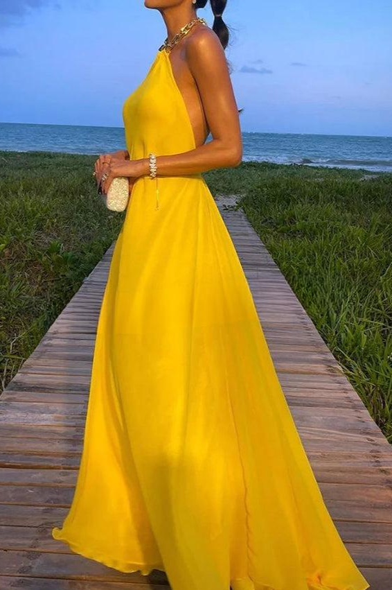Bayline™ | Lange Halterjurk Met Gouden Ketting