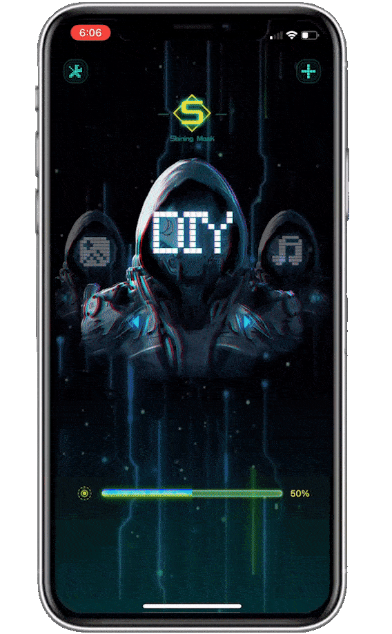 De ingebouwde microfoon detecteert omringende muziek en synchroniseert de bewegingen van het masker met het ritme.
