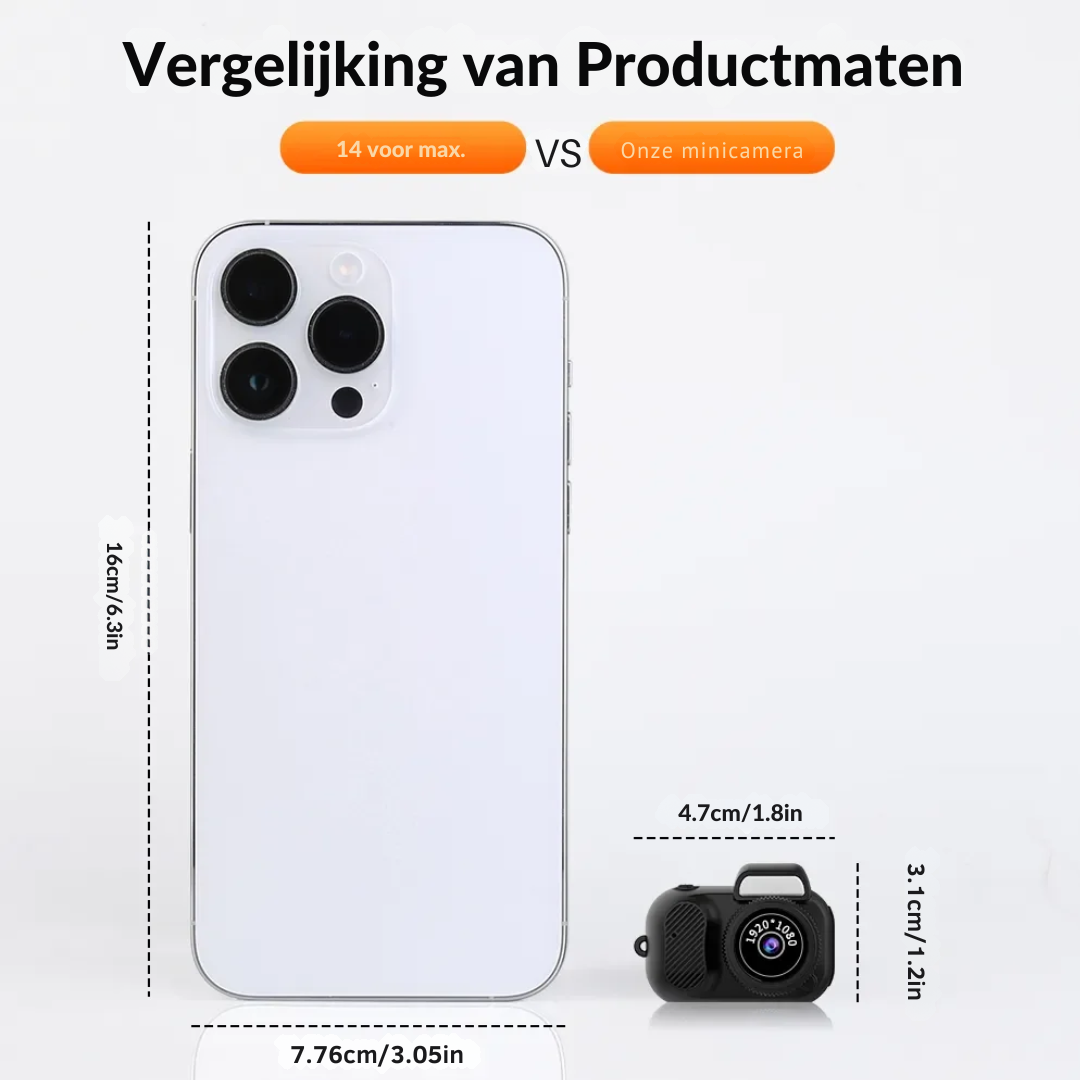 Klein genoeg om in je zak of aan een sleutelhanger te passen, zorgt deze camera ervoor dat je nooit een opname mist, waar je ook bent.