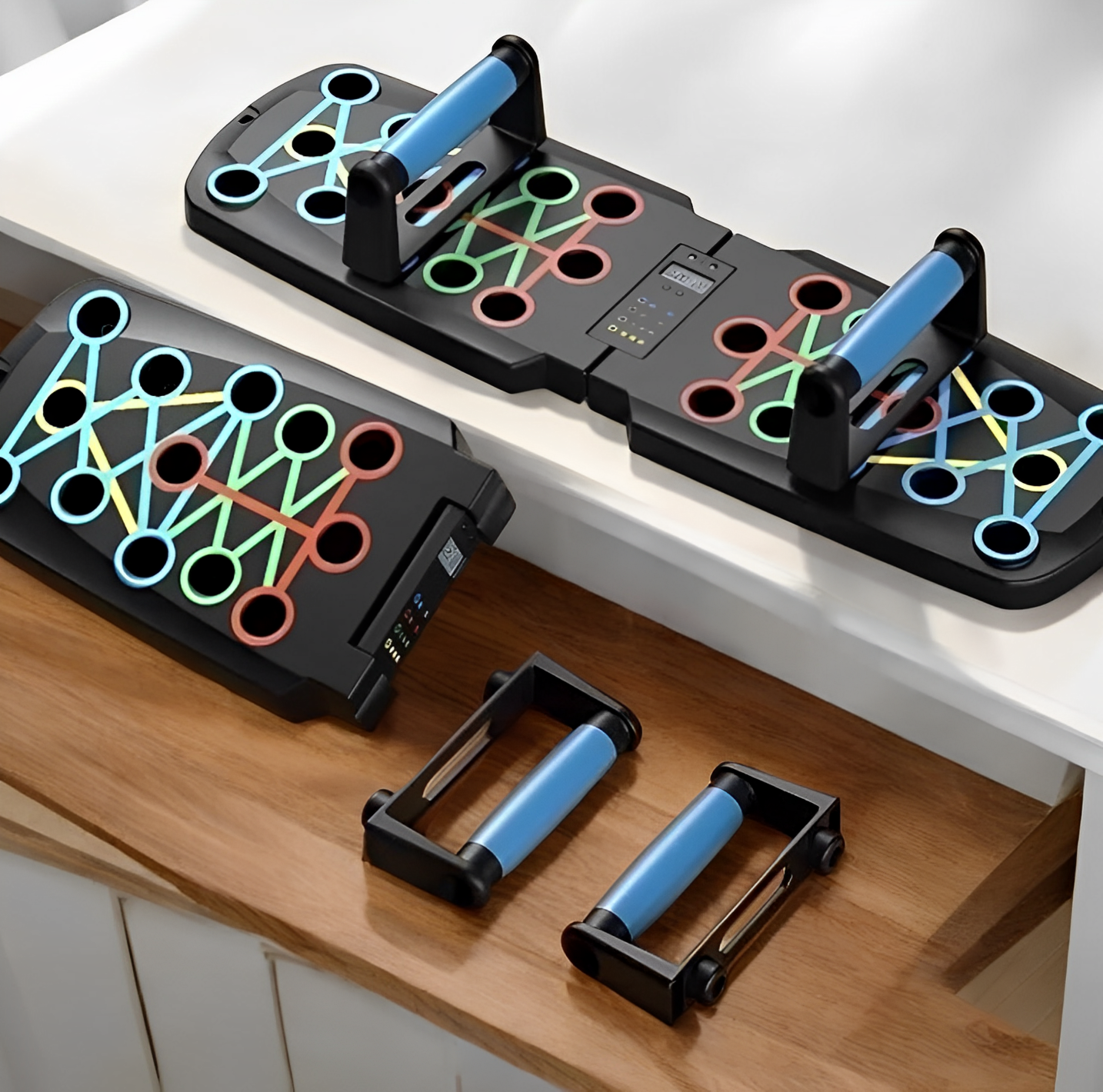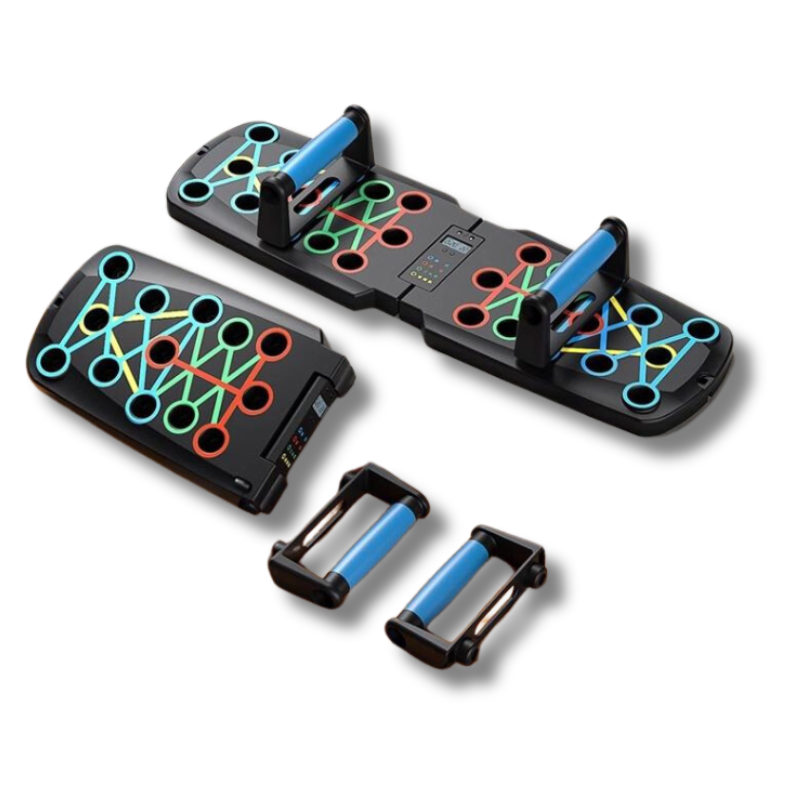 Bereik perfecte push-ups met de kleurgecodeerde sleuven van ons board die geschikt zijn voor alle fitnessniveaus.