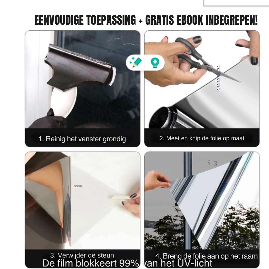 Het installeren van onze raam privacyfolie platina is een fluitje van een cent en er is geen professionele hulp nodig.