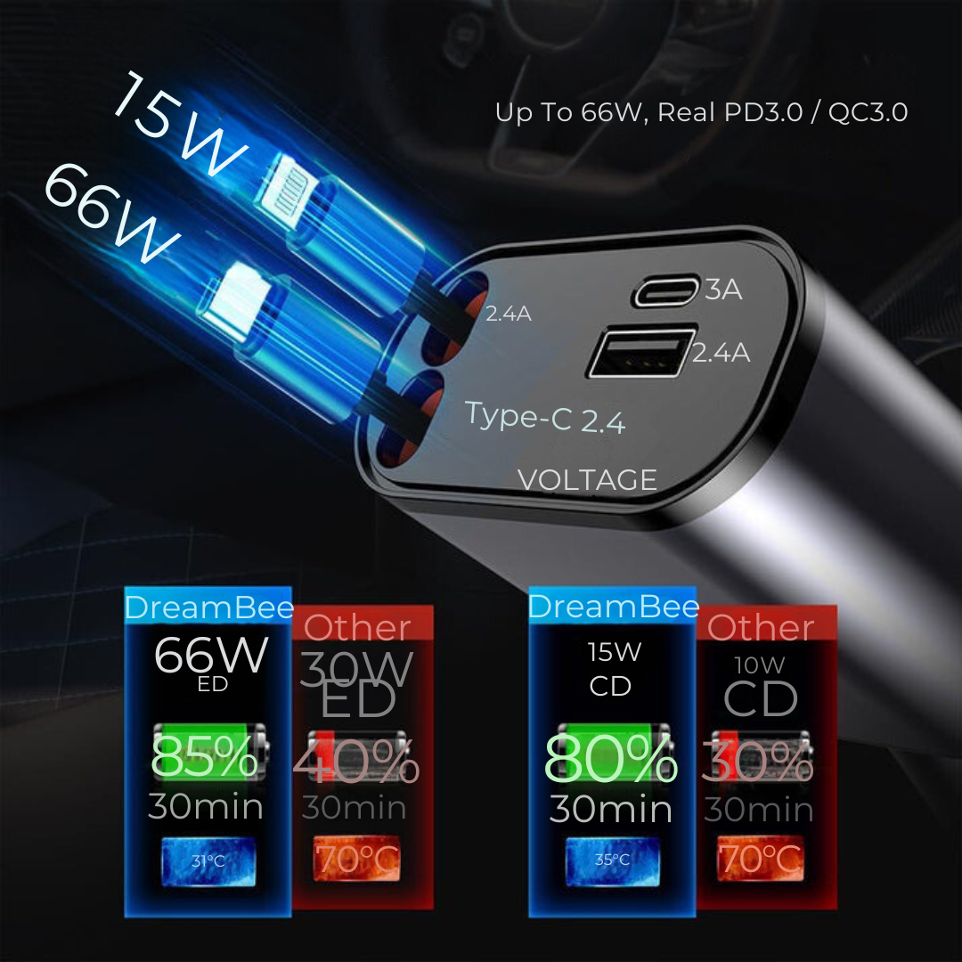 Deze lader is perfect voor woon-werkverkeer en roadtrips en zorgt voor een opgeruimd auto-interieur terwijl hij betrouwbare stroom levert.