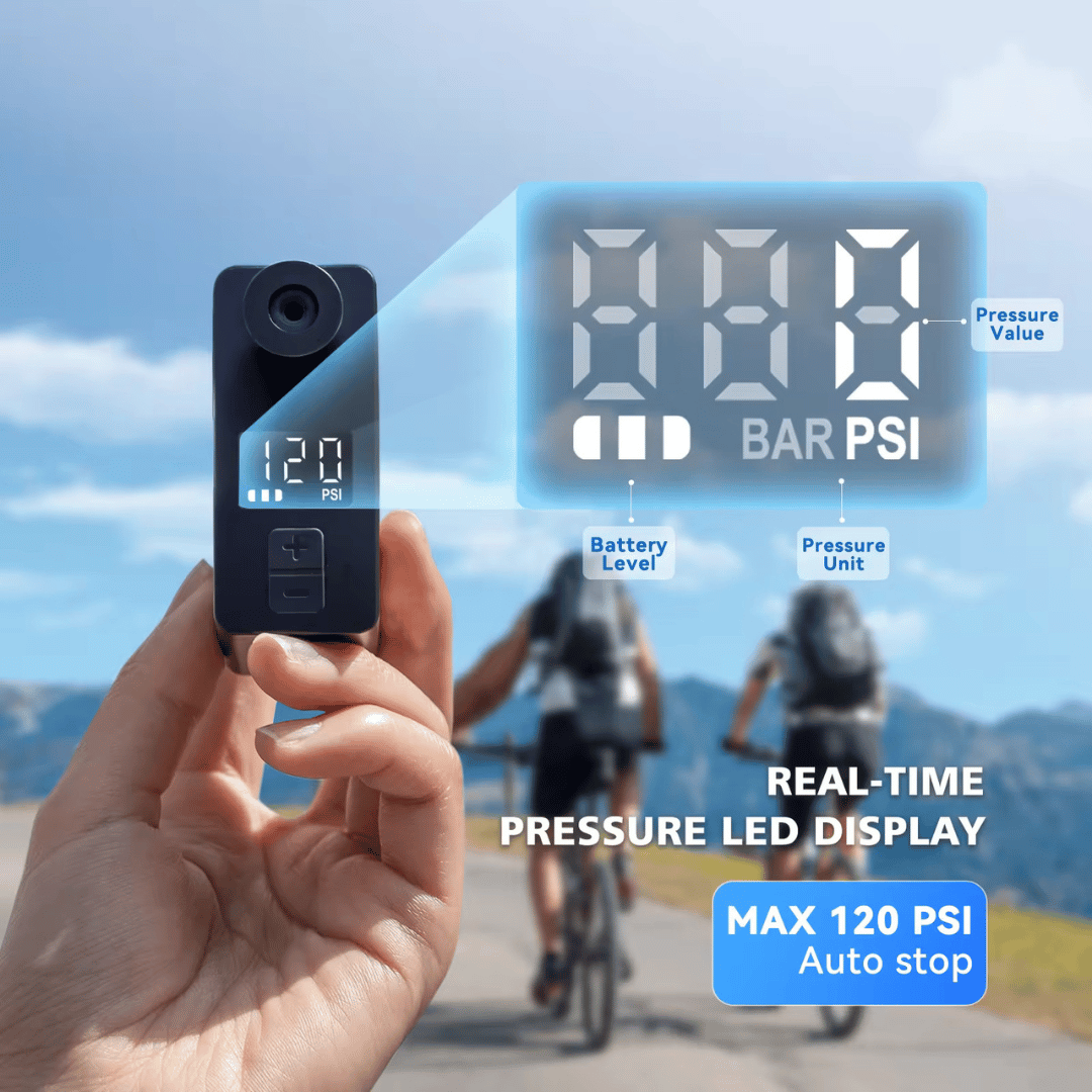 Deze pomp past moeiteloos in je rugzak of fietstas, waardoor je altijd voorbereid bent op een onverwachte lek.